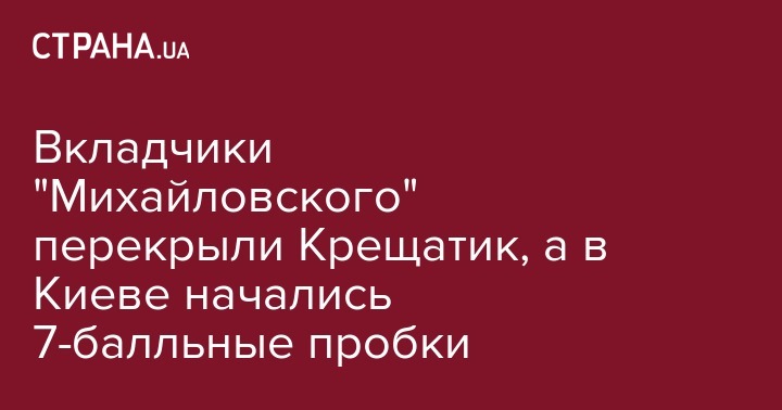 Вкладчики "Михайловского" перекрыли Крещатик, а в Киеве начались 7-балльные пробки