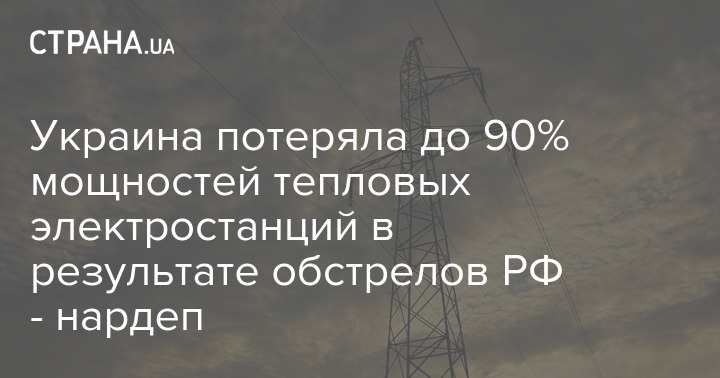 Украина потеряла до 90% мощностей тепловых электростанций в результате обстрелов РФ. Об этом сообщил народный депутат Алексей Кучеренко.