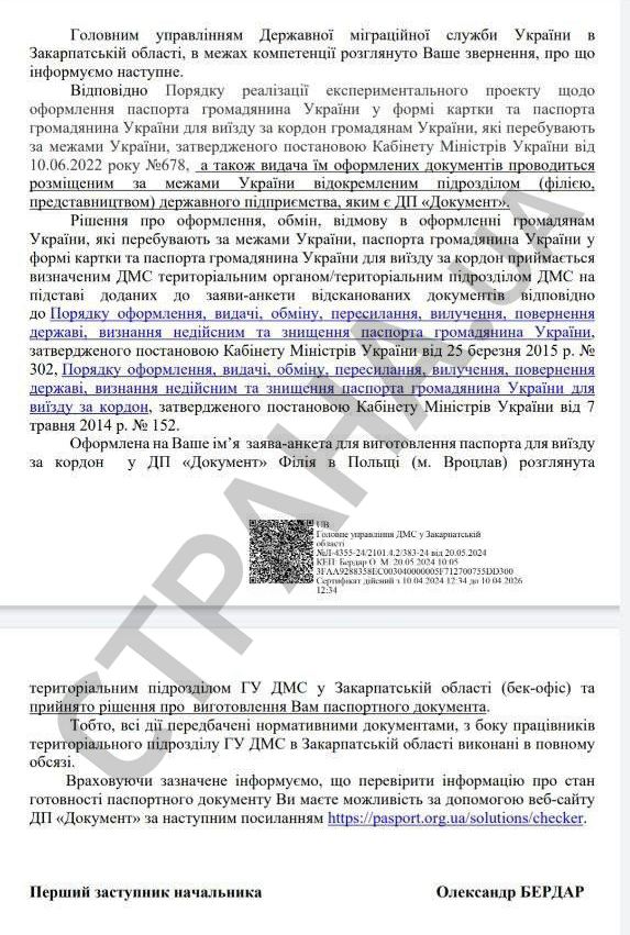 Статусы готовности паспорта на ресурсах ГП "Документ" и Государственной миграционной службы закрыли - там появляется надпись "персонализировано".