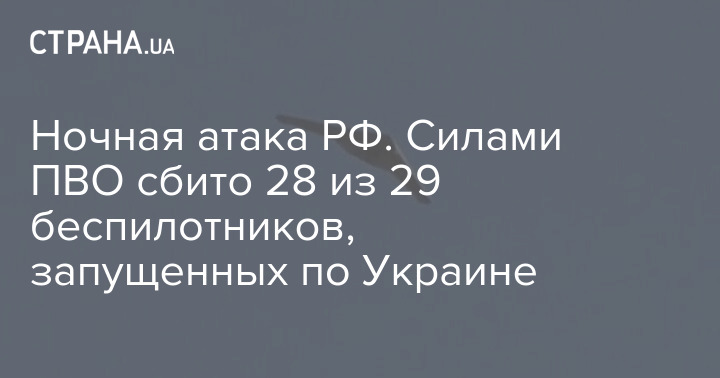 "В результате противовоздушного боя сбиты 28 "Шахедов" в Одесской, Николаевской, Днепропетровской, Харьковской, Черкасской, Херсонской и Кировоградской областях", - говорится в сообщении.