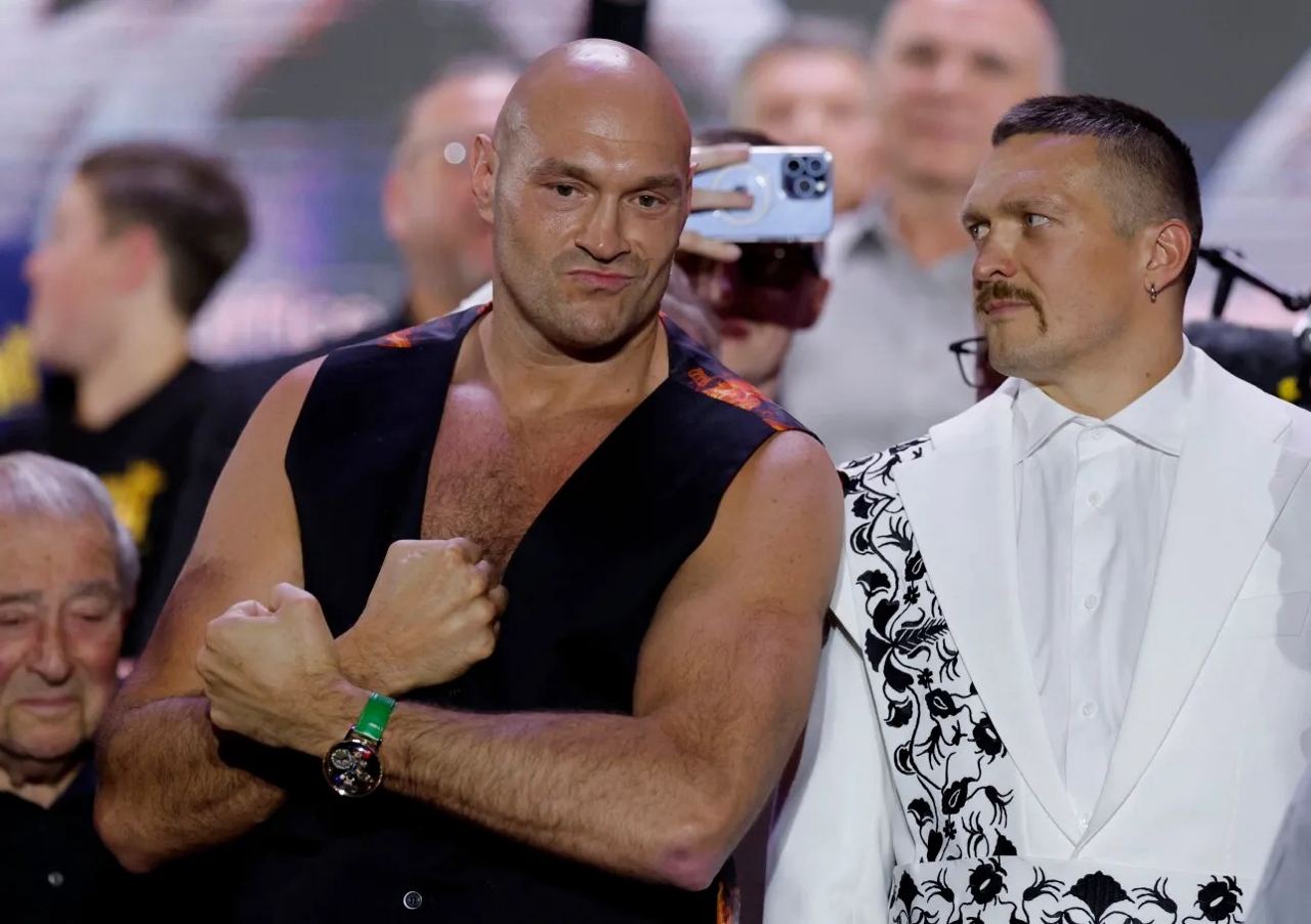 На левой руке у Усика надеты часы Jacob & Со., которыми увековечили исторический бой за титул абсолютного чемпиона мира по боксу в супертяжелом весе. В таких же на битву взглядов выходил Фьюри.