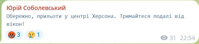 23:03 В Херсоне прилеты, сообщает зампредседателя облсовета Соболевский.