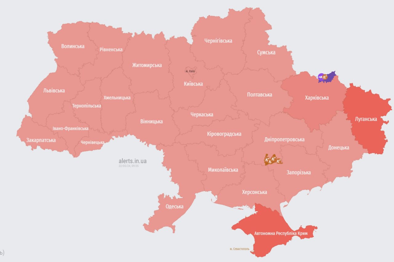 09:37 Вся Украина в зоне воздушной тревоги из-за взлета МиГ 31К в России.