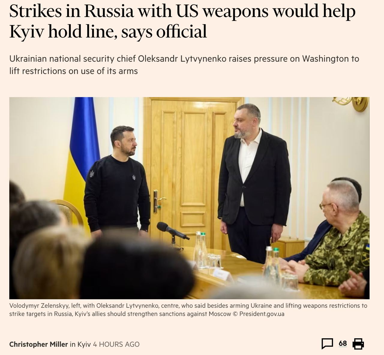 Литвиненко снова призвал США снять свой "абсолютно несправедливый" запрет на использование оружия по территории РФ. Он заявил, что без этого запрета армия РФ, возможно, не смогла бы так быстро продвигаться под Харьковом, поскольку Украина не может бить по тылам этой наступательной группировки.