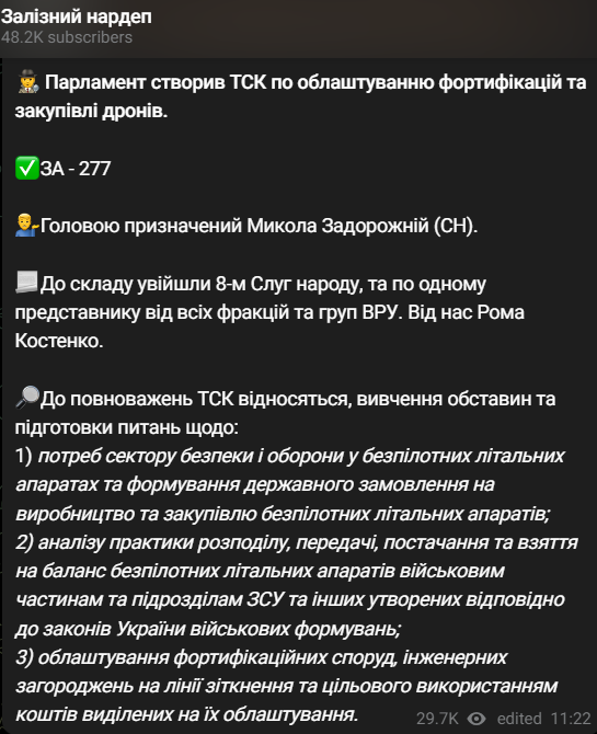 Сегодня, 22 мая, Верховная Рада будет расследовать строительство укреплений и закупку дронов.  Депутаты проголосовали за создание соответствующей временной следственной комиссии.