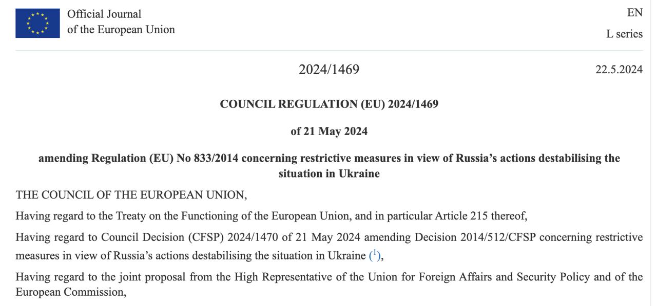 Данное решение добавлено в пакет экономических санкций ЕС против РФ.