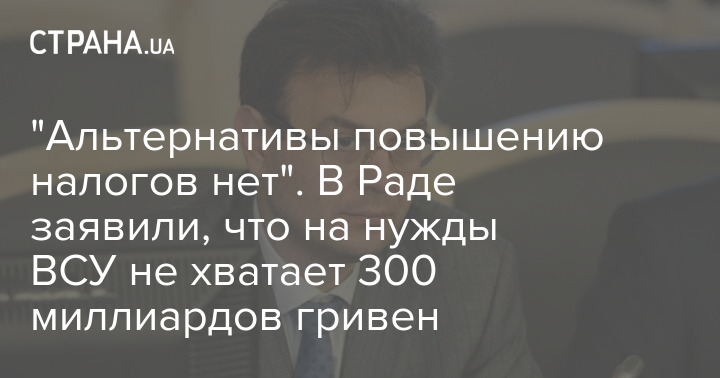 "Альтернативы повышению налогов нет". В Раде заявили, что на нужды ВСУ не хватает 300 миллиардов гривен