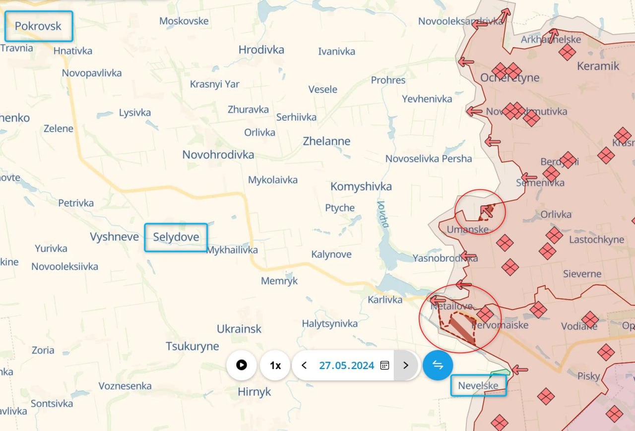 За минувшие сутки российские войска снова продвинулись на Покровском направлении - в районе Уманского и к югу от Нетайлово.