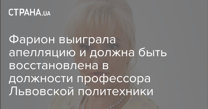 Ирина Фарион выиграла апелляцию и должна быть восстановлена в должности профессора Львовской политехники.