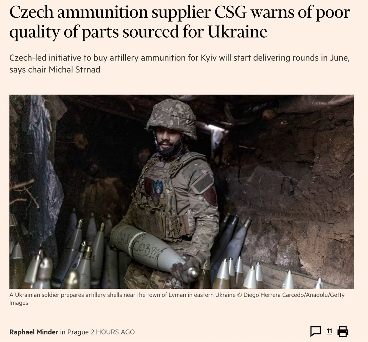 Половина снарядов, закупленных Чехией для Украины в странах Африки и Азии, оказались некачественными.