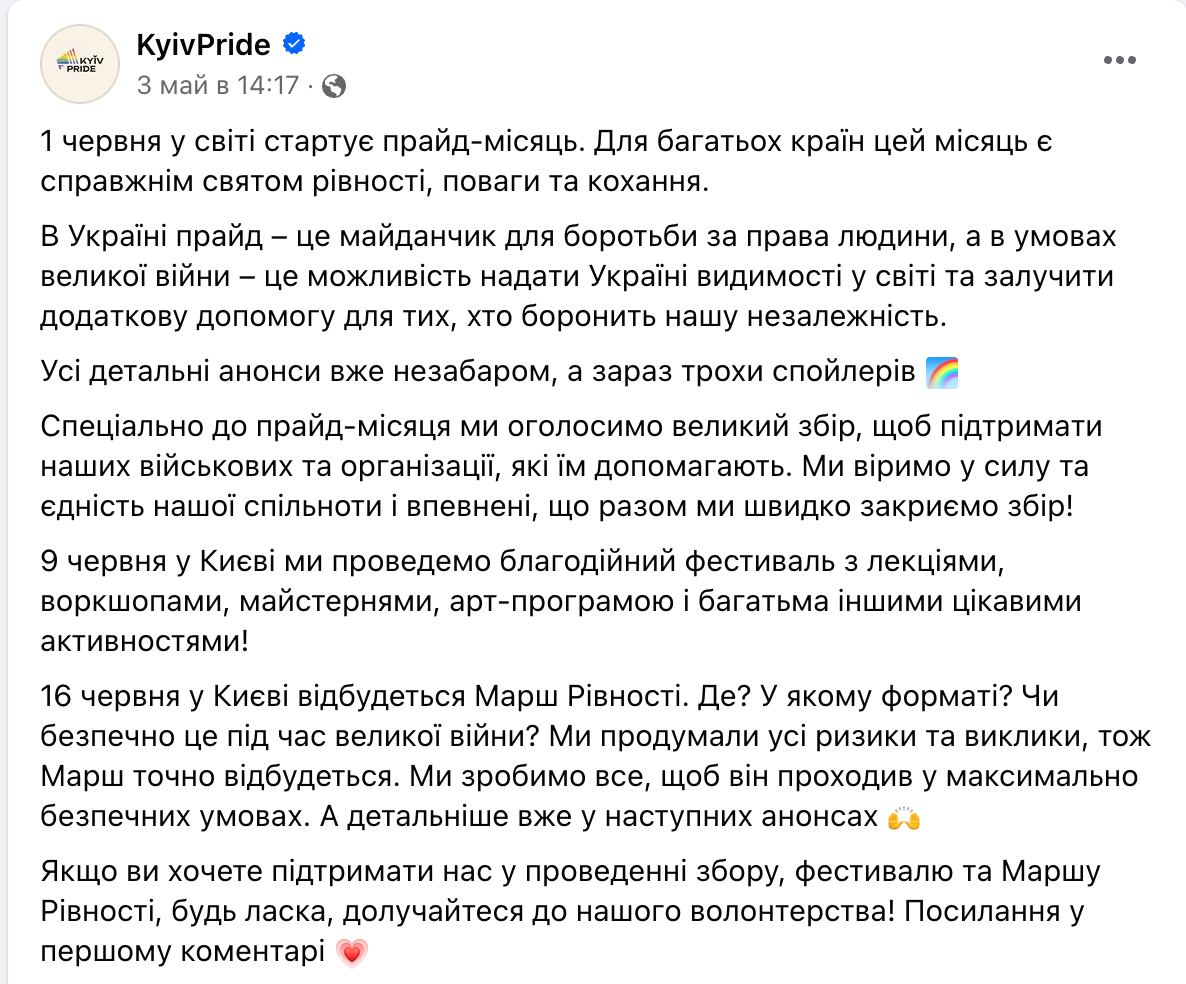 В Киеве 16 июня состоится ЛГБТ-марш - первый с начала вторжения РФ.