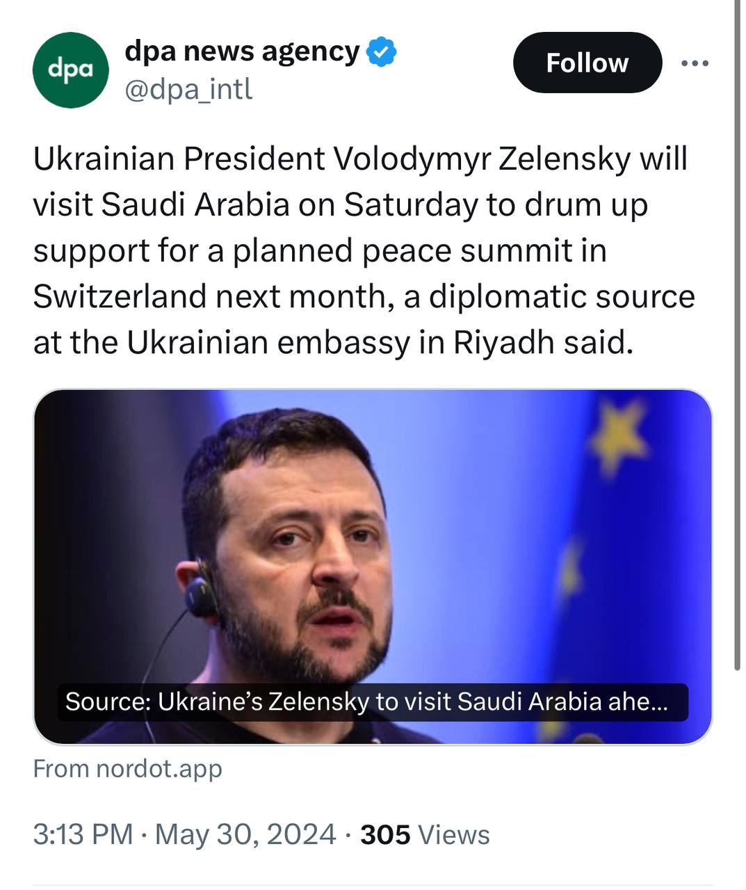 Президент Украины Владимир Зеленский 1 июня посетит Саудовскую Аравию.