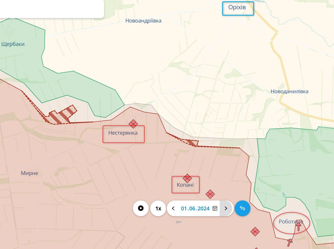 Потенциально это движение, если у РФ получится его развить, может быть направлено на заход в тыл войскам, обороняющим участок Работино. А также в сторону Орехова - ключевой точки обороны Украины на Запорожском фронте.
