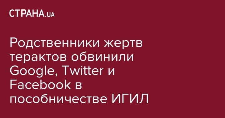 По мнению родственников жертв терактов, Google, Twitter и Facebook обеспечивали террористическую организацию "Исламское государство" своими аккаунтами, которые использовались для распространения экстремистской пропаганды, а также для сбора средств и вербовки новых членов.