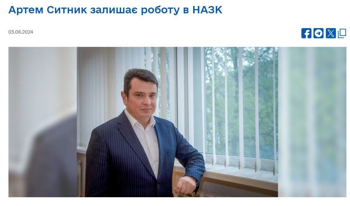 Национального агентства по предотвращению коррупции сообщает об отставке своего заместителя главы Артема Сытника.