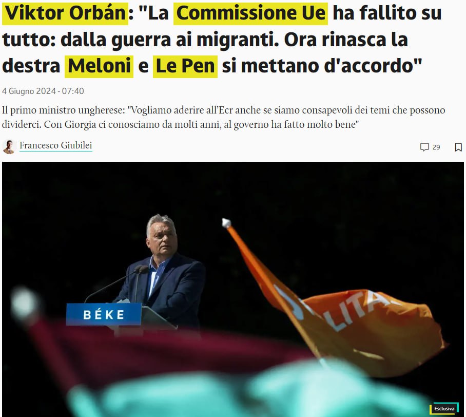"Мы находимся на распутье: либо изолировать конфликт и найти дипломатический путь, либо углубляться в войну. Если мы позволим Украине нанести удар по России оружием, которое также поставляет Италия, это будет иметь последствия в виде сильной реакции России, и риск вмешательства НАТО окажется в одном шаге", – сказал Орбан.