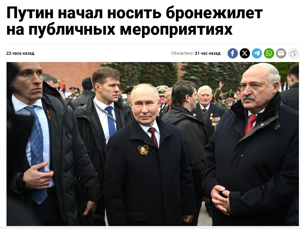 "Иногда он поднимает и поправляет плечи, что свидетельствует о дискомфорте от того, как баллистический жилет сидит на плечах, и при длительном ношении его вес может вызывать раздражение и дискомфорт. Видно, что Путин держит пальто высоко застегнутым, и видно, что он проверяет, застегнуто ли оно, как будто пытается убедиться, что никто не видит, что под пальто. По моему профессиональному мнению, Путин во время посещения парада носит некую форму баллистической защиты", — резюмировала Миллер.