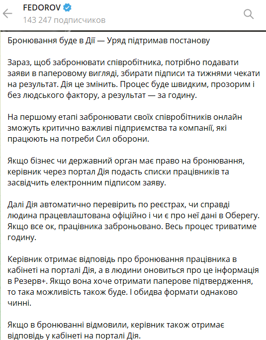 Об этом сообщил глава Министерства цифровой трансформации Михаил Федоров в своем телеграм-канале.