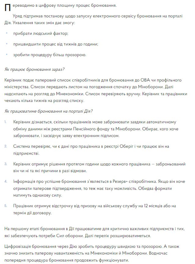 На первом этапе бронирование в "Дие" будет работать для критически важных предприятий и тех, которые обеспечивают потребности сил обороны.