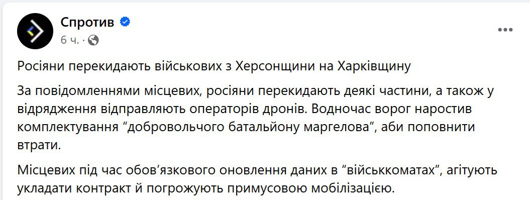 17.54 Россияне перебрасывают часть сил с Херсонского направления на север Харьковской области.