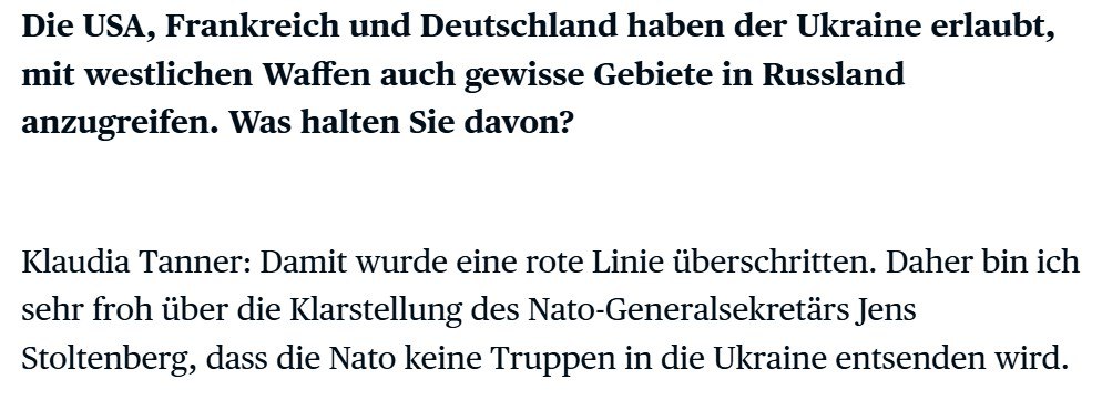 "Красная линия была пересечена. Поэтому я очень рада разъяснению Генерального секретаря НАТО Йенса Столтенберга о том, что НАТО не будет отправлять войска в Украину", - сказала Таннер.