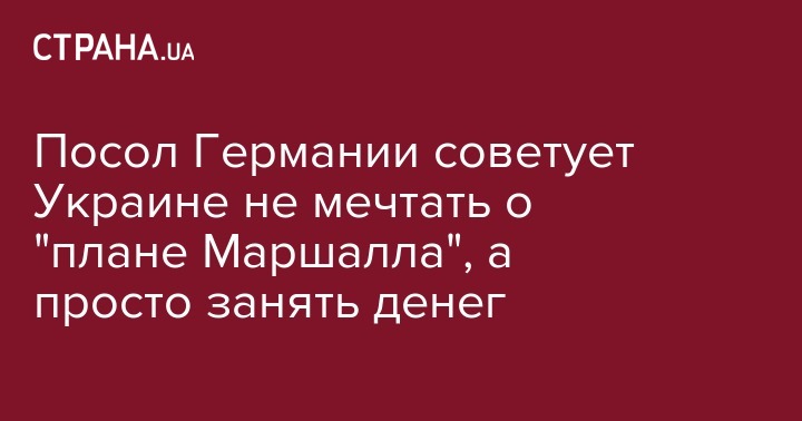 Посол Германии советует Украине не мечтать о "плане Маршалла", а просто занять денег