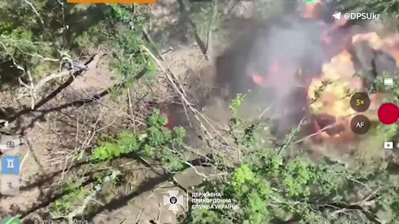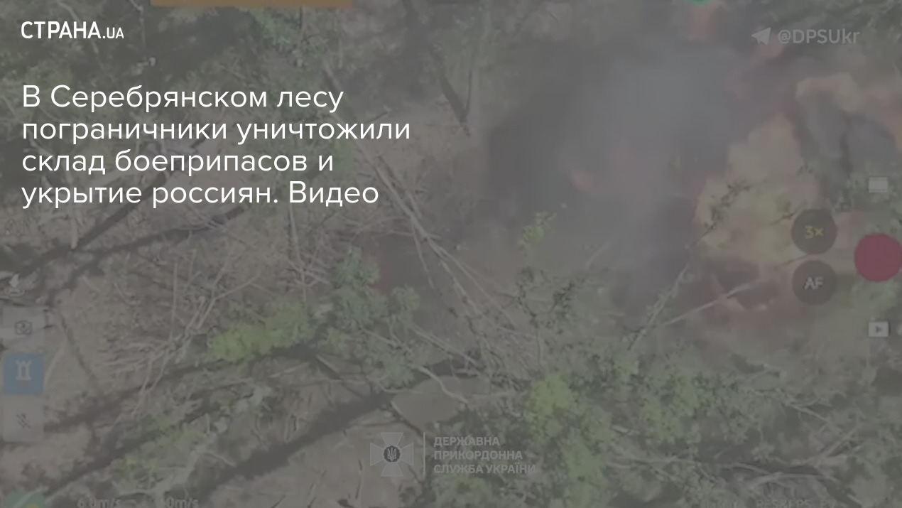 Пограничники уничтожили склад боеприпасов РФ в Серебрянском лесу. Скриншот из видео