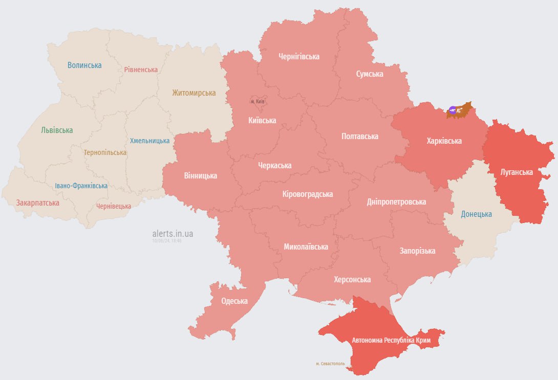 18:49 Тревога в большей части страны.