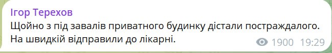 Тем временем мэр Харькова Терехов написал, что на месте еще одного прилета в Киевском районе города сильно повреждены минимум два частных дома.