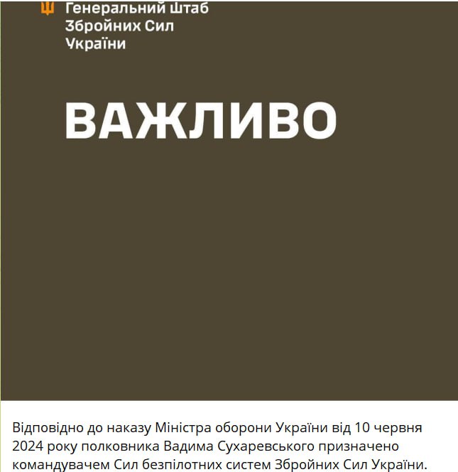 Сухаревский с зимы является замом главкома Сырского по беспилотным системам.