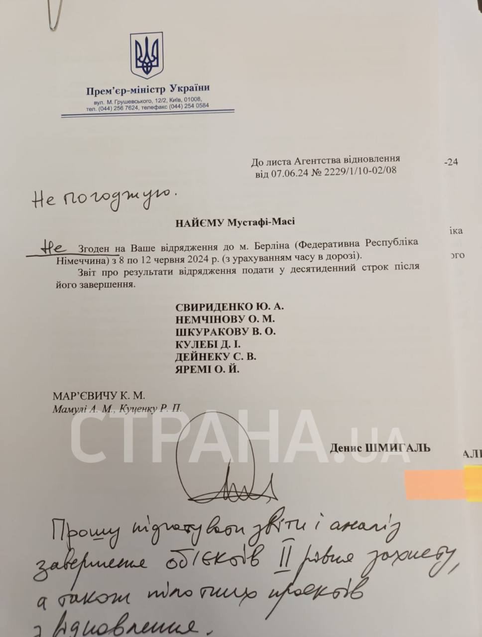 "На 12 июня было назначено совещание в правительстве по выполнению Агентством восстановления работ по обустройству инженерно-технической защиты второго уровня на объектах критической инфраструктуры и энергетики. Там должен был быть заслушан отчет агентства. Именно поэтому премьер-министр не согласовал командировку руководителя агентства", - рассказал источник "Страны".