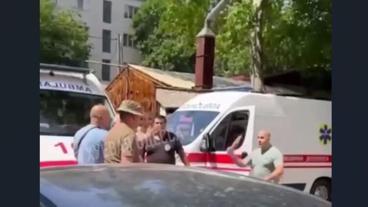 В сети появилось видео начала драки работников ТЦК и сотрудников скорой помощи в Одессе.