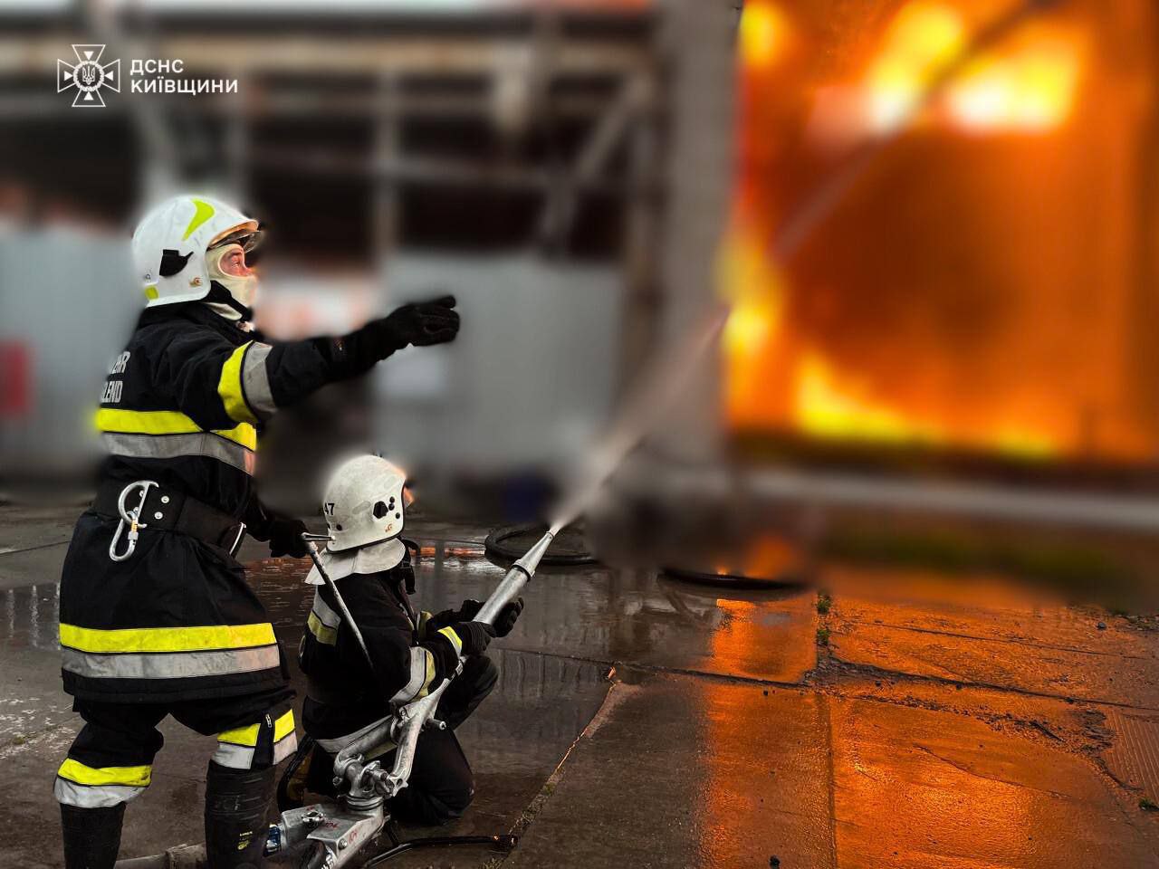 В ГСЧС показали кадры пожара на предприятии в Киевской области.