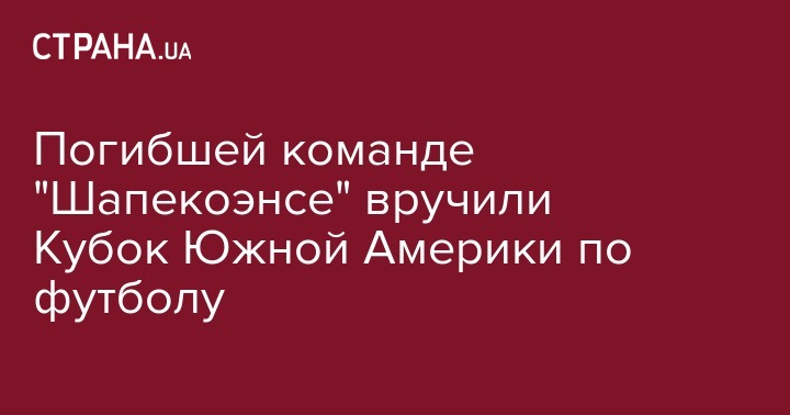 Погибшей команде "Шапекоэнсе" вручили Кубок Южной Америки по футболу
