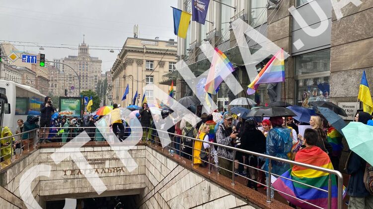 Возле метро Театральная в Киеве собрались участники "Марша равенства" за права ЛГБТ. Фото: "Страна"