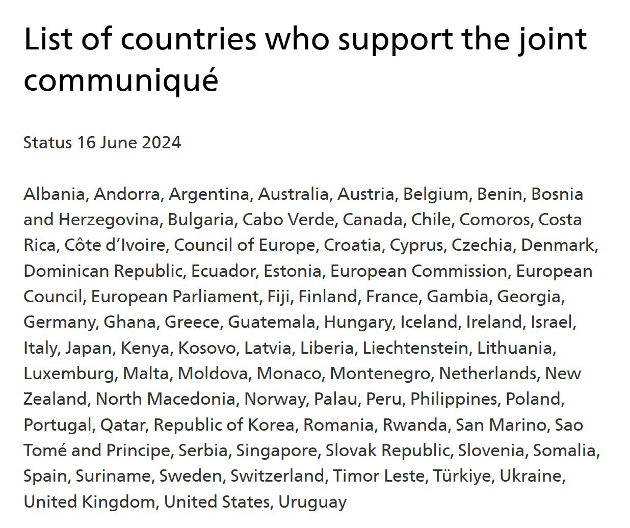 Между тем список стран-подписантов коммюнике саммита в Швейцарии уменьшился. Из него исчезли Ирак и Иордания (новая версия списка - на скриншоте).