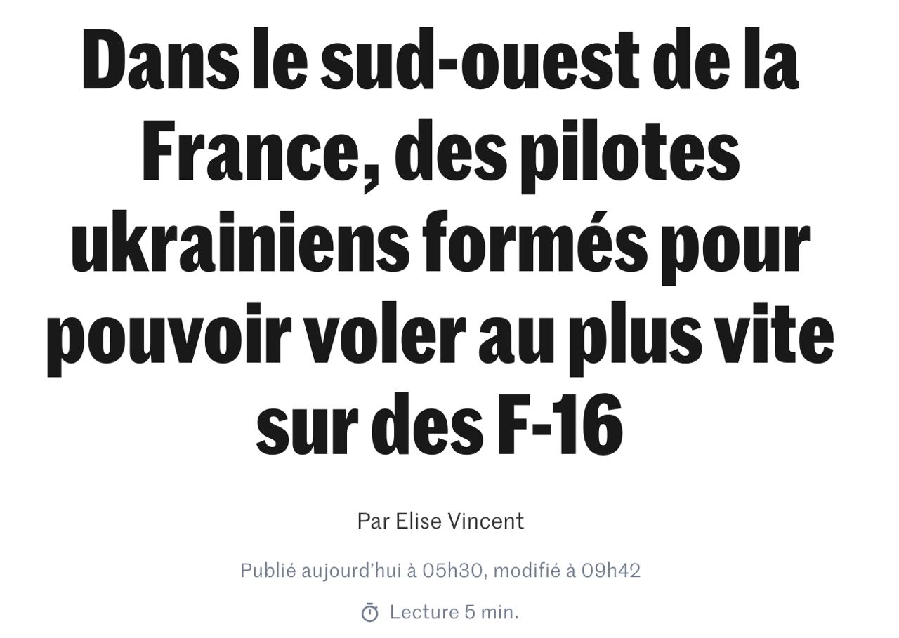 Между тем первые украинские пилоты F-16 завершат обучение во Франции в сентябре, сообщает газета Le Monde.