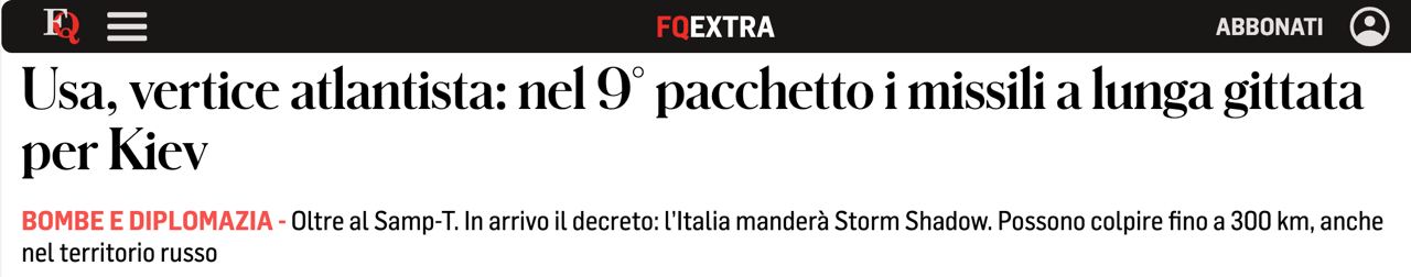 В публикации говорится, что дальнобойные ракеты наряду с системой ПВО Samp-T должны войти в следующий пакет военной помощи Рима, который будет объявлен до конца месяца.