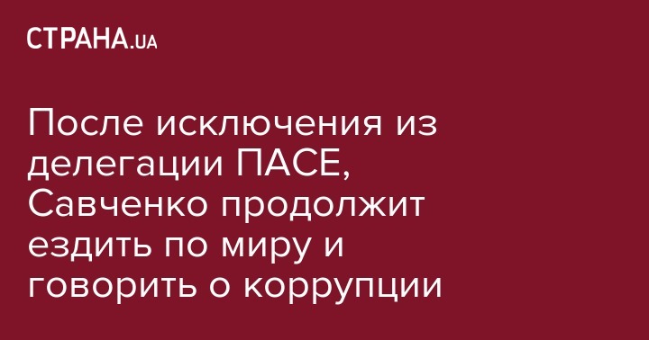 После исключения из делегации ПАСЕ, Савченко продолжит ездить по миру и говорить о коррупции