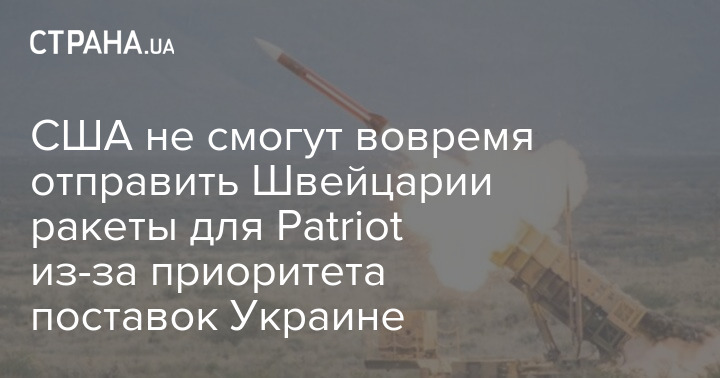 США не смогут поставить Швейцарии ракеты для ЗРК Patriot в предполагаемые сроки, потому что отдают приоритет в новых поставках Украине.