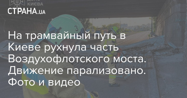 В Киеве обрушилась часть пешеходной части Воздухофлотского путепровода. Фото: ГСЧС