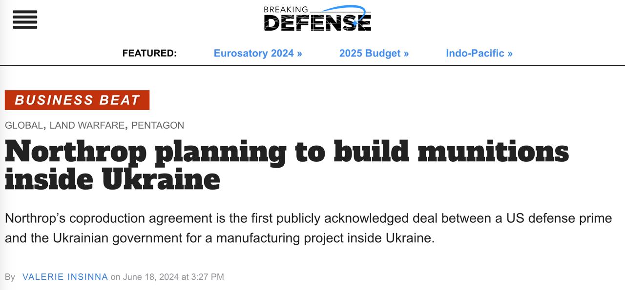 09:27 Первая американская корпорация заявила о планах начать производство боеприпасов в Украине, сообщает Breaking Defence.