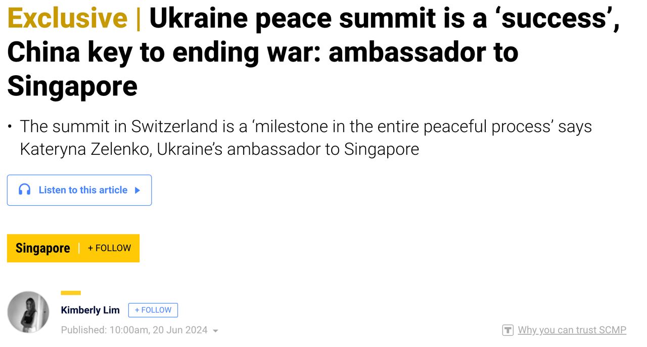 Об этом заявила посол Украины в Сингапуре Екатерина Зеленко в комментарии изданию South China Morning Post.