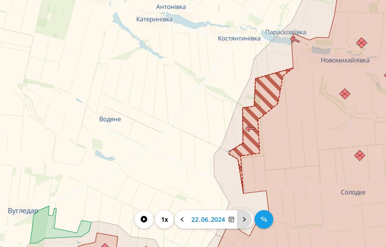 Также россияне продвинулись на Угледарском направлении - южнее Константиновки и в сторону Водяного. Ранее Генштаб сообщал об активизации РФ на этом направлении.