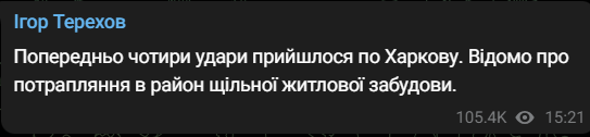 Об этом сообщает глава Харьковской ОВА Олег Синегубов и мэр города Игорь Терехов.