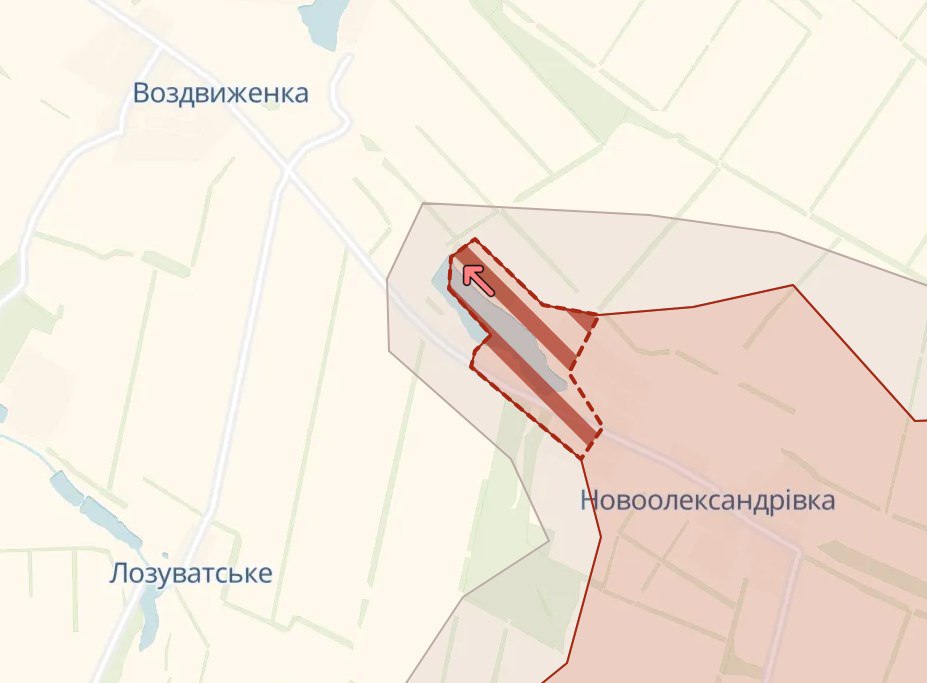 По данным паблика, армия РФ прошла к северо-западу от Новоалександровки к селу Воздвиженка, после которого дорога к трассе становится открытой.