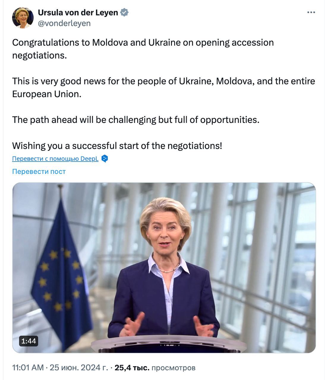 Напомним, ранее Евросоюз утвердил решение о начале переговоров с Украиной и Молдовой по вступлению 25 июня. Перед этим начало переговоров о приеме в ЕС Молдовы и Украины согласовали послы ЕС.