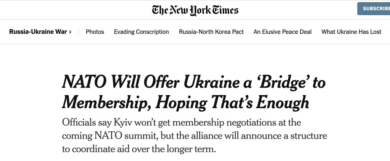 Украину не пригласят в НАТО на саммите в Вашингтоне, но объявят о новой структуре для координации помощи - NYT