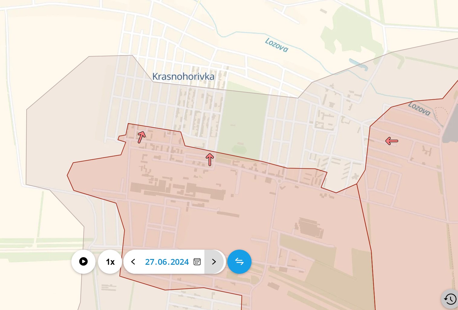 Судя по карте Deep State, под полным контролем ВСУ остается только северная часть Красногоровки. Остальное либо под россиянами, либо в серой зоне.