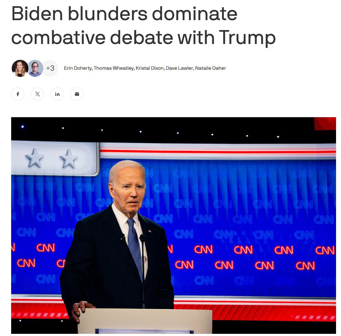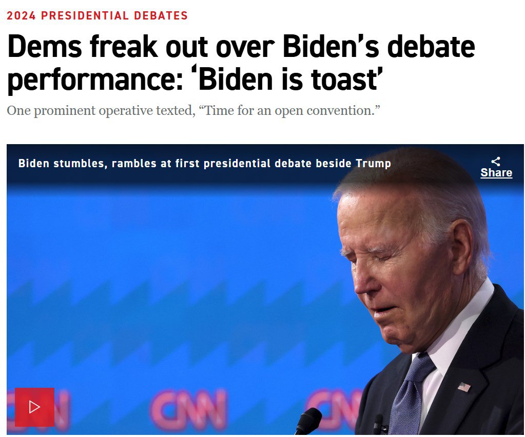 "Некоторые демократы уже открыто говорили, что Байден должен прекратить свою кампанию. Один крупный донор демократов и сторонник Байдена просто сказал: "Байден должен уйти. Никаких сомнений".